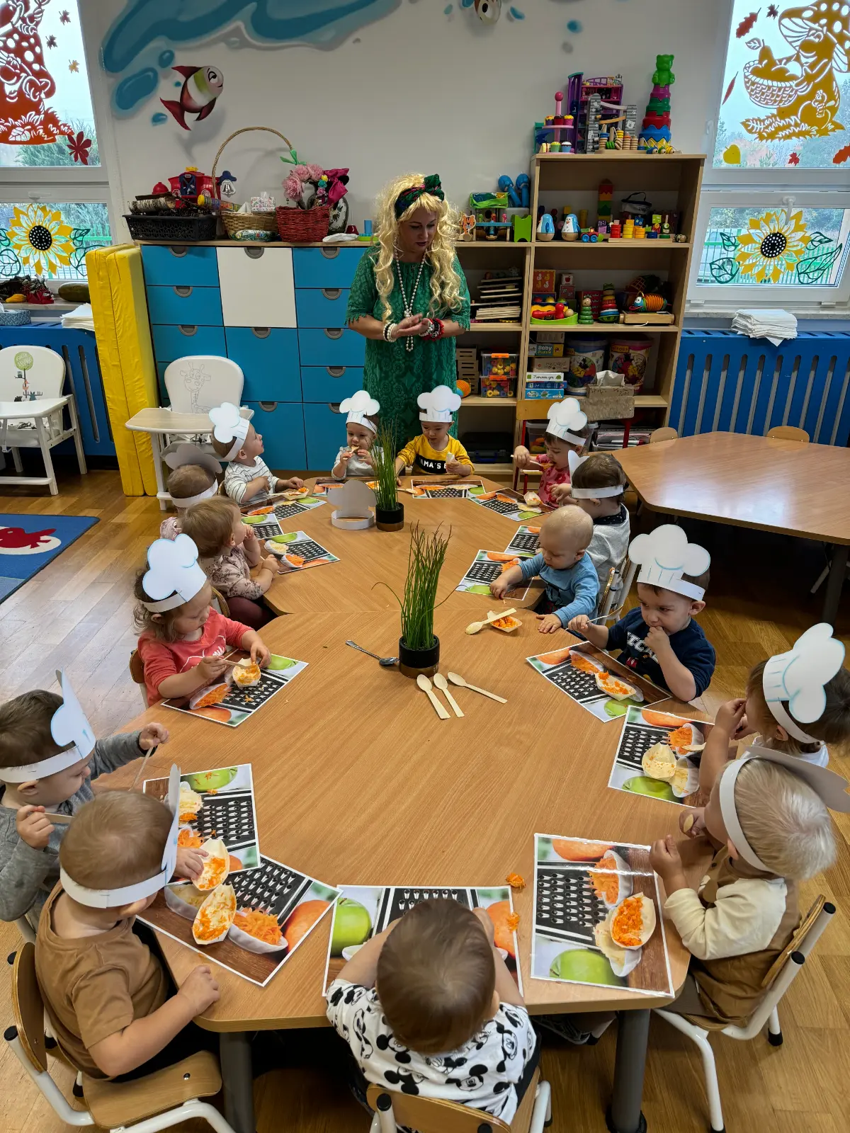 Raz w miesiącu realizowane są warsztaty kulinarne, które są formą nauki zdrowego odżywiania i czerpania przyjemności z jedzenia zdrowych, estetycznie podanych, a przede wszystkim własnoręcznie wykonanych posiłków. Dzięki zajęciom kulinarnym dzieci mogą dotykać, wąchać i smakować, bawić się kolorem i kształtem, rozbudzać swoją wyobraźnię i fantazję, uczyć się kulturalnego zachowania przy stole z zachowaniem higieny. Dzieci podczas codziennych posiłków mają możliwość decydowania i wyboru m.in. poprzez samodzielne nakładanie posiłków, sporządzanie kanapek…